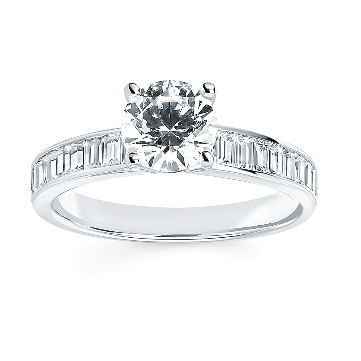 Engagement Ring: Modern Bridal: 1/2 Ctw. Diamond Semi Mount shown with 1 Ct. Round Center Diamond in 14K Gold shown with 1/2 Ctw. Diamond Wedding Band in 14K Gold - Items also available to purchase separately