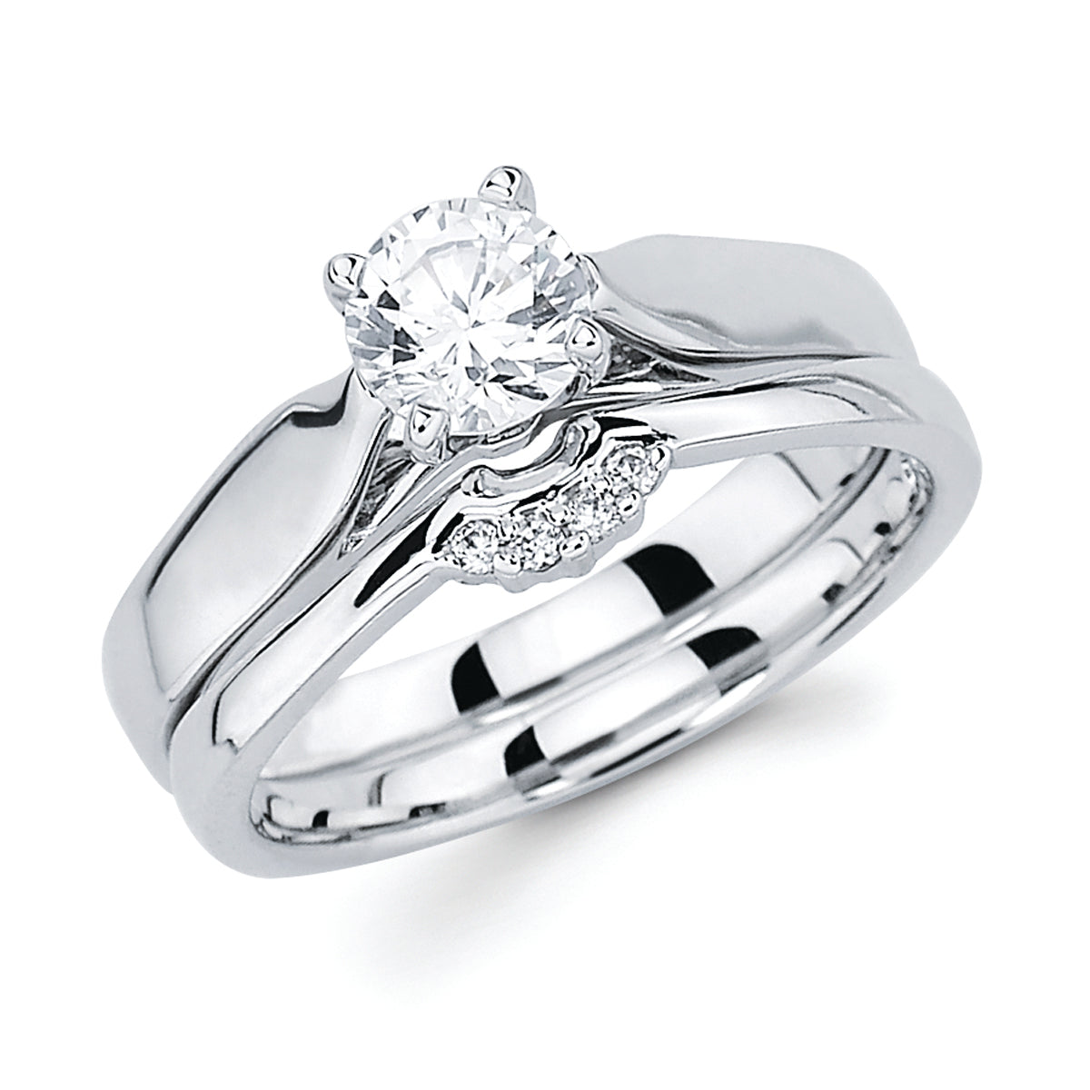 Engagement Ring: Classic Bridal: Diamond Ring shown with 3/4 Ct. Round Center Stone in 14K Gold shown with .04 Ctw. Diamond Contour Wedding Band in 14K Gold - Items also available to purchase separately