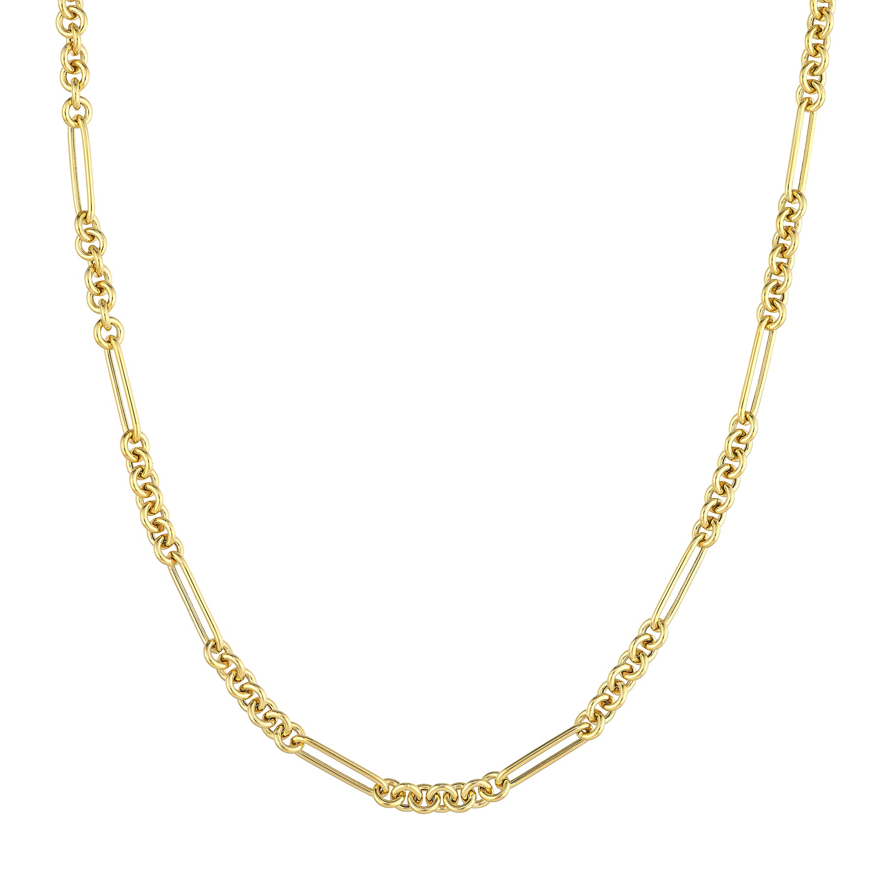 Take it up a notch with our 7+1 hollow fancy Rounded Paper Clip chain featuring seven 5mm round links and one 4x17mm long link. Whether casual or formal attire–it's super fitting on both ends.