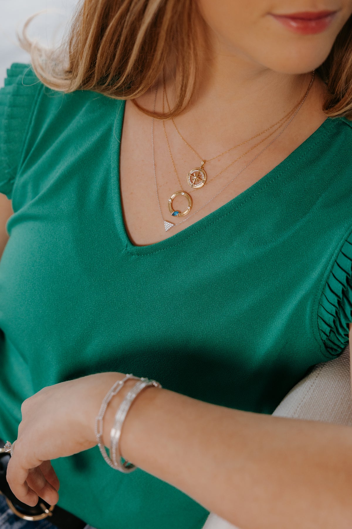 Sparkle Lane - Pendant: 0.05 Ctw Diamond Compass Pendant in Sterling Silver with 18"" Chain
