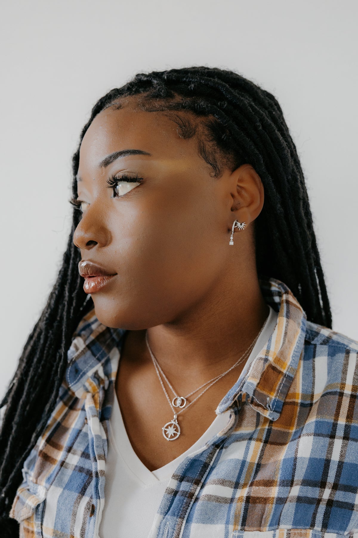Sparkle Lane - Pendant: 0.05 Ctw Diamond Compass Pendant in Sterling Silver with 18"" Chain