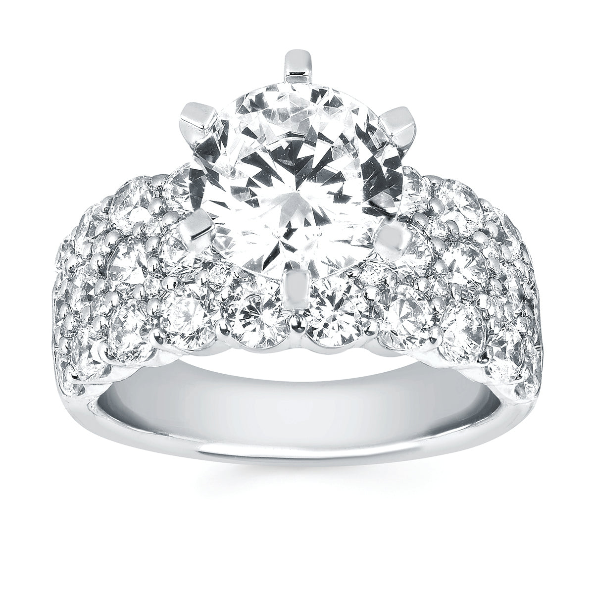 Classic Bridal: 2 1/2 Ctw. Diamond Semi Mount shown with 2.50 Ct. Round Center Diamond in 14K Gold