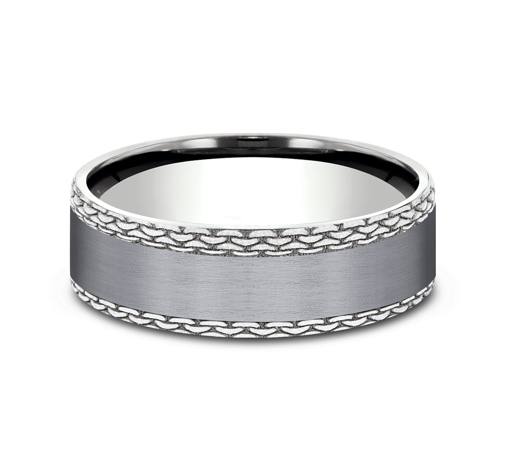 Satin center, chain link patterned edges