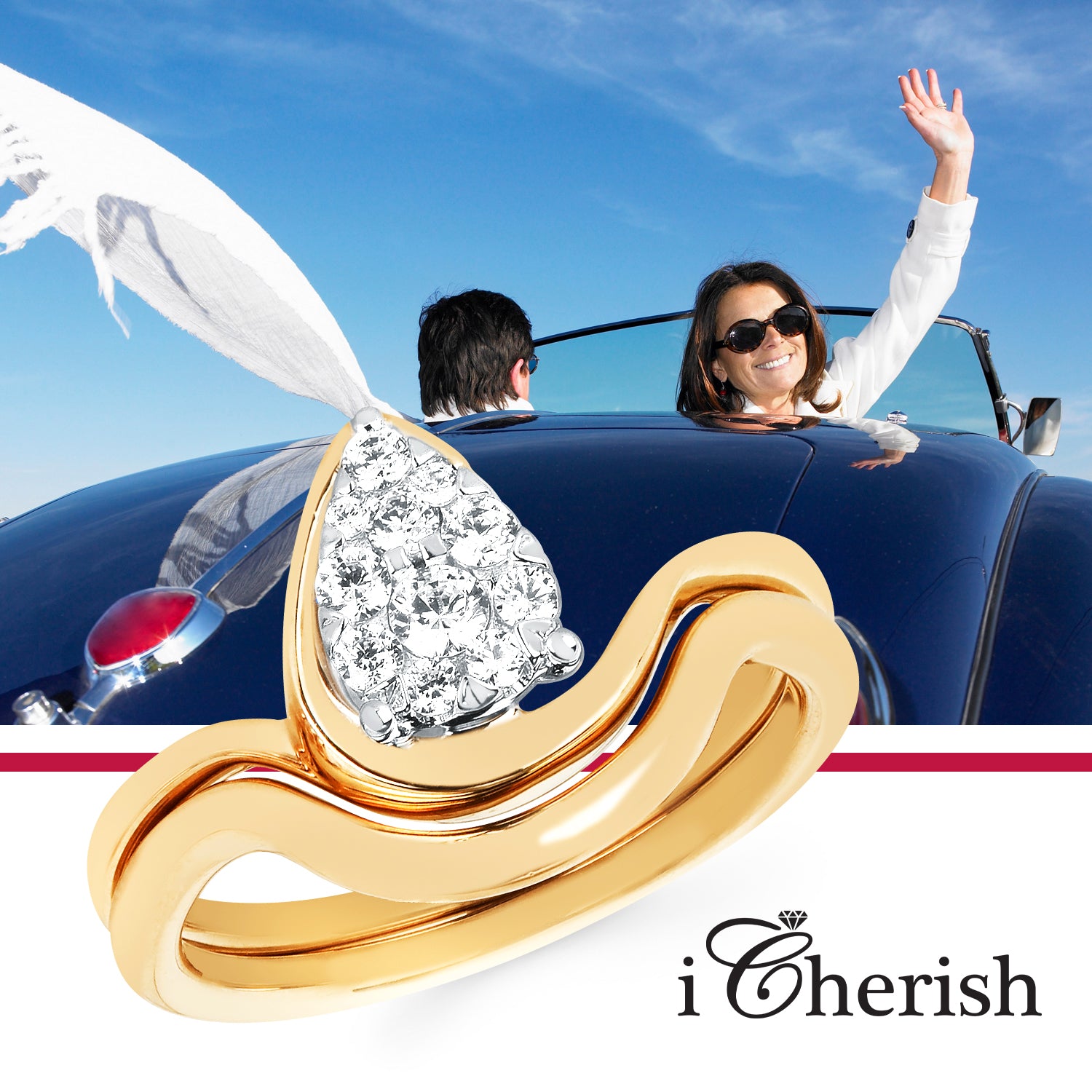 Engagement Ring: iCherish® 1/4 Ctw. Diamond Ring in 14K Gold shown with iCherish® Wedding Band in 14K Gold - Items also available to purchase separately